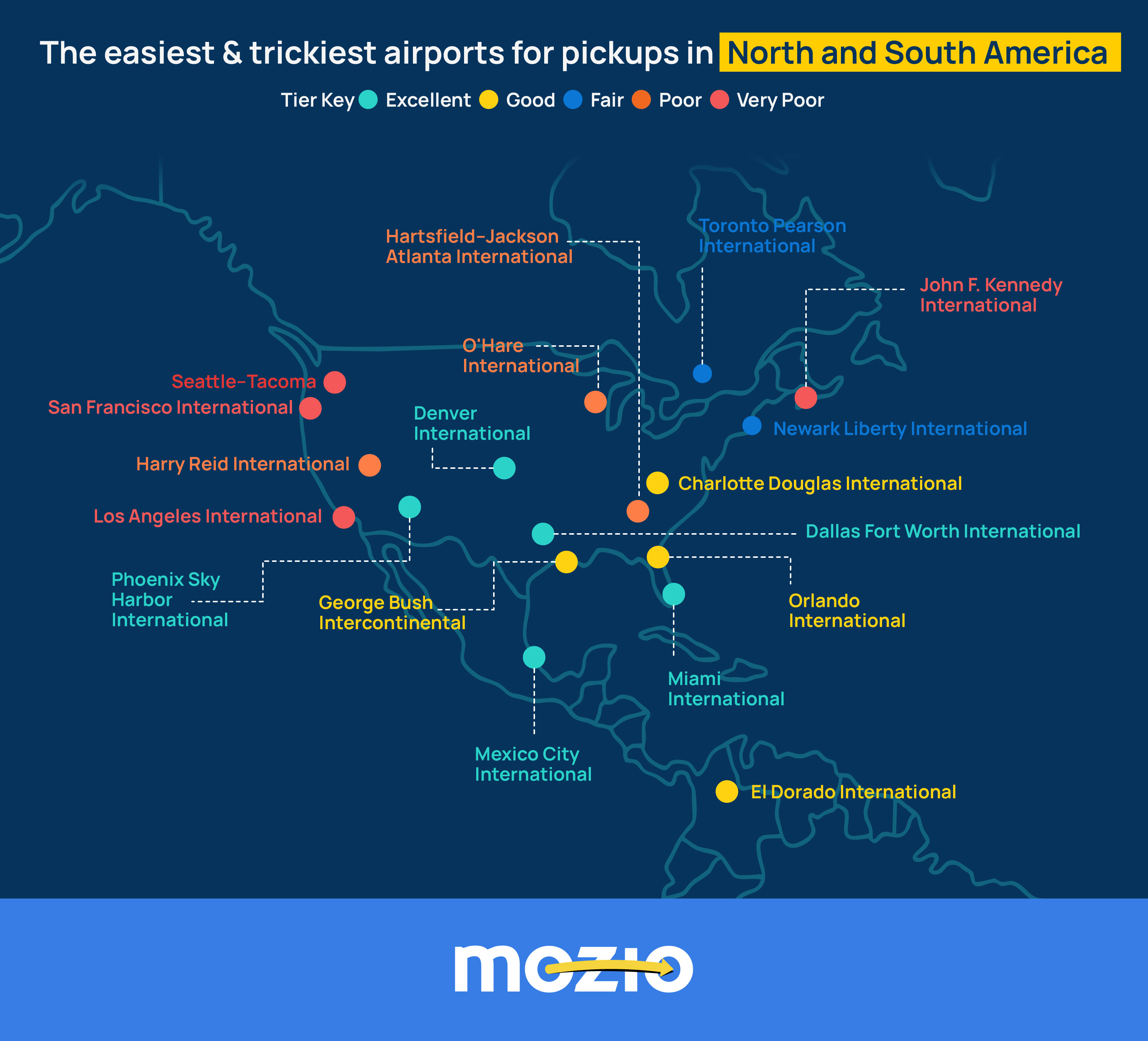 Airports in the “good” tier generally offer a smooth pickup experience, with only a few minor limitations that prevent them from reaching the top tier. Most limitations are minor – a slightly longer walk here, a small surcharge there – but nothing that significantly slows passengers down.